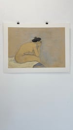 Sitting on the edge of the bed, nude drawing session w/passepartout
